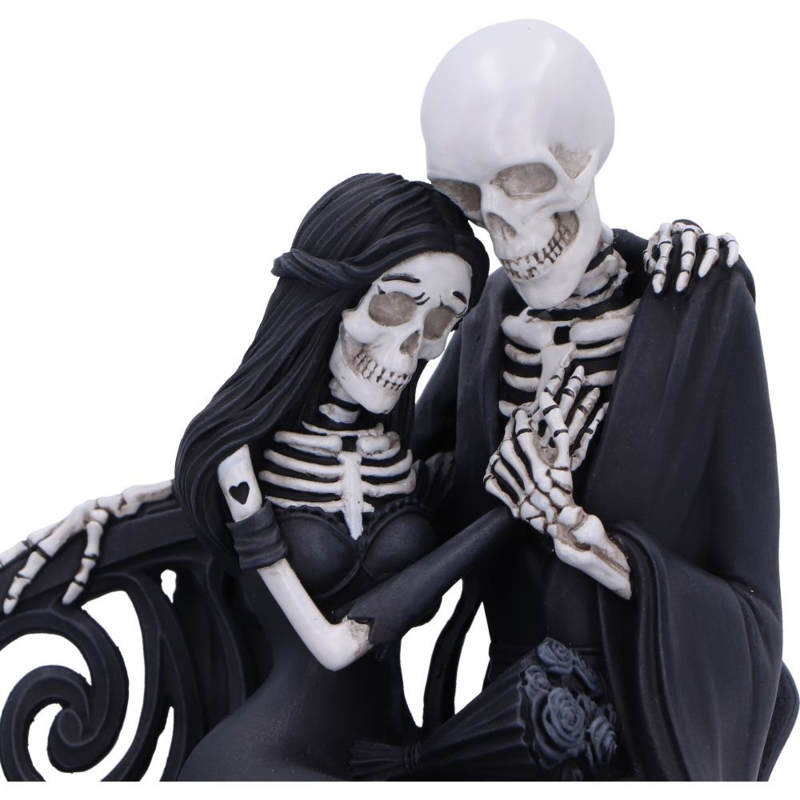 The Nemesis Now Original Eternal Bond Figurine is a unique and emotive ornament capturing two skeletons tenderly embracing on a bench. Symbolising the timeless nature of true love, the piece blends dark gothic aesthetics with heartfelt sentiment, making it a powerful statement piece for any alternative decor collection.