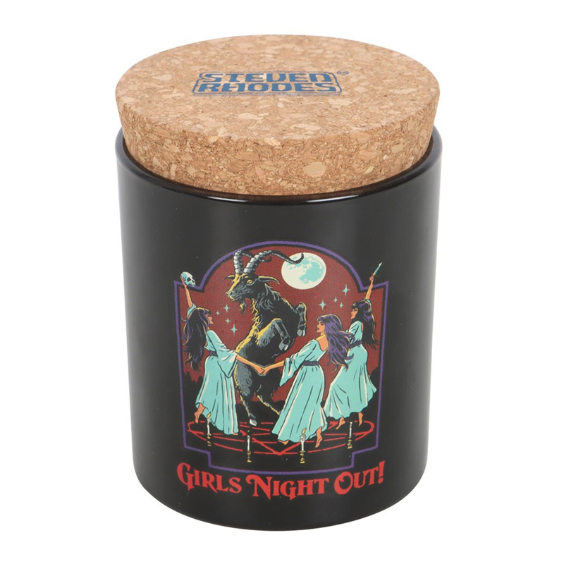 It's not a proper girls' night without a goat, a pentagram, and a scent that screams mischief. Light this opium scented candle, chant something unholy, and let the good vibes get a little dark. 35-hour total burn time. Paraffin wax. Officially licensed and part of the Steven Rhodes collection of retro gifts.