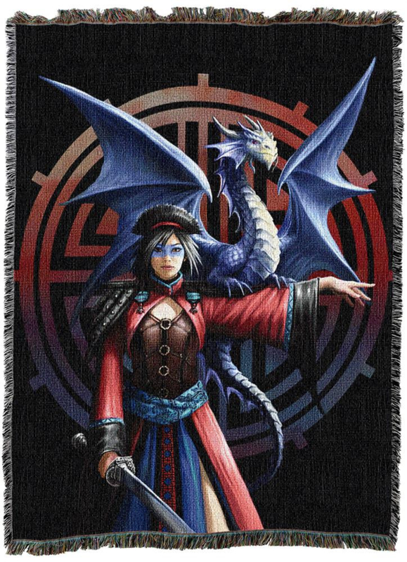 Look To The East Dragon Tapestry Throw by Anne Stokes