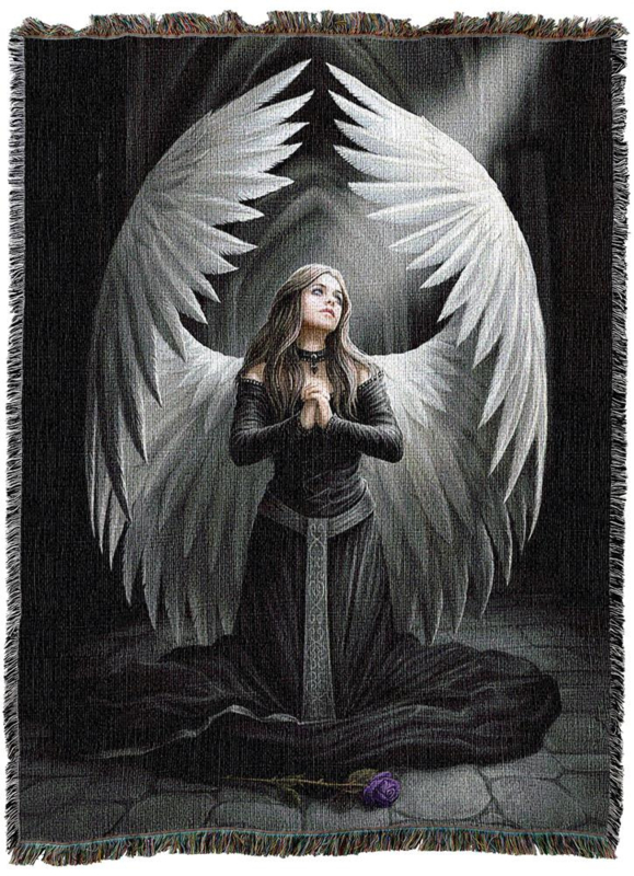 Prayer For The Fallen Angel Tapestry Throw by Anne Stokes