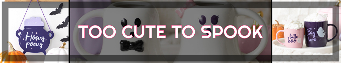 Spark joy this spooky season with the Too Cute to Spook collection! These kid-friendly Halloween decorations feature friendly ghosts, smiling black cats and bubbling cauldrons in cute, pastel designs to be enjoyed by all ages.