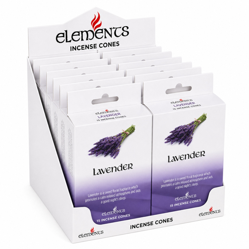 The box contains 12 packs and each pack contains 15 incense cones. Lavender is a sweet floral fragrance which promotes a calm relaxed atmosphere and aids a good night's sleep.