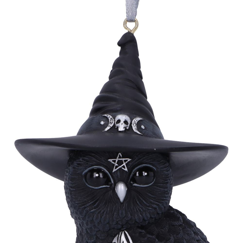 From the bewitching mind of the Nemesis Now in-house design team comes this Witch Owl, Owlocen hanging decoration. This strange creature is the union of good and evil. As you look into its black eyes you notice that all is not as it seems, darkness resides within. The owl appears to be channelling the spirit of the witch, encapsulated by a large pointed hat and silver markings cascading down its wings. The owl is decorated in ornate silver detailing and occult symbology. Cast in high-quality resin and carefully hand-painted this figurine is likely to be the cutest occultist you've ever seen. This amalgamation of horror and delight will make the perfect addition to any macabre fanatic's collection.