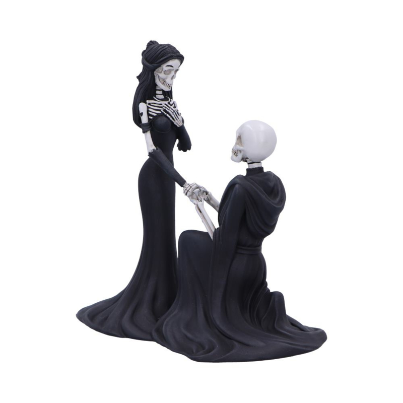 The Nemesis Now Original Eternal Proposal Figurine is a beautifully crafted piece, capturing a haunting, heartfelt moment. A skeletal couple frozen in time as one proposes to the other. A symbol of everlasting love beyond life, this figurine combines romance with dark elegance, making it a unique addition to any alternative decor.